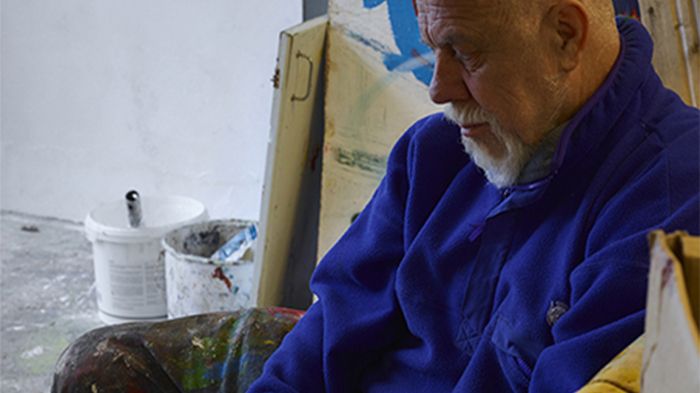 Pontus Hammarén, tidigare chef för Borås konstmuseum, samtalar med Jarl Ingvarsson.