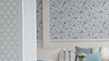Det finns en längtan hos många av oss att hitta mönster som förstärker vår personlighet. Falsterbos romantiska känsla är tänkt att passa lika bra i en lägenhet i stan som på en gård på landet, säger Hanna Wendelbo-Hansson, vars personliga favorit är mönstret med fåglarna som är en viktig bärare i kollektionen.