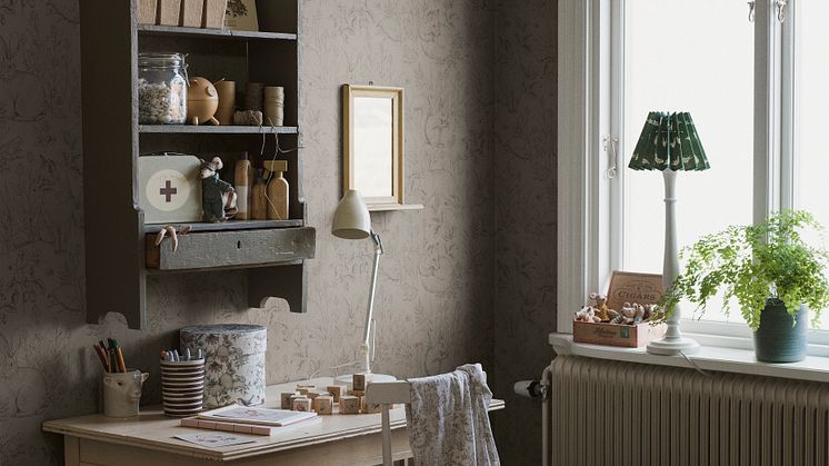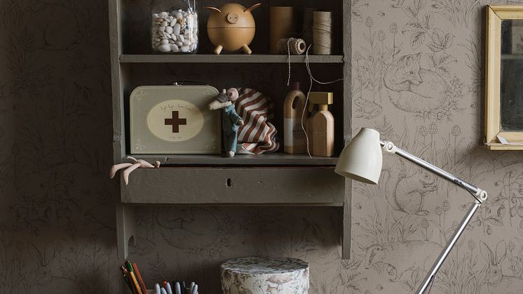 Mönsterbilden Forest Friends som har blivit en klassiker, kommer i två nya aktuella kulörer – brunt och stålblått. På tapeten kikar rävar, harar, grävlingar och andra spännande djur nyfiket fram ur skogens grönska. Även nyheten Minou visar en magisk djurvärld, som en skogssaga. Här finns ekorrar, kaniner, grodor och skogsmöss bland skogens alla växter och svampar. Tapeten är tryckt med en teknik för att få fram toner och skiftningar samt den fina materialkänslan från det akvarellmålade originalet. Nomi är ett uttrycksfullt romantiskt rosenmönster som närmast är ett signum för Newbie, inspirerat från gamla tapeter och möbeltyger. Tänk ett klassiskt motiv med buketter där rosornas praktfulla mönsterbild växer sig över väggen med en cremebeige eller rosa botten. Ljuvligare än så är svårt att omslutas av i ett rum.