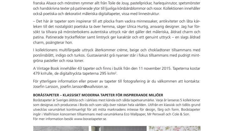 • Boråstapeter presenterar A Vintage Book – en kärleksförklaring till det nostalgiskt poetiska