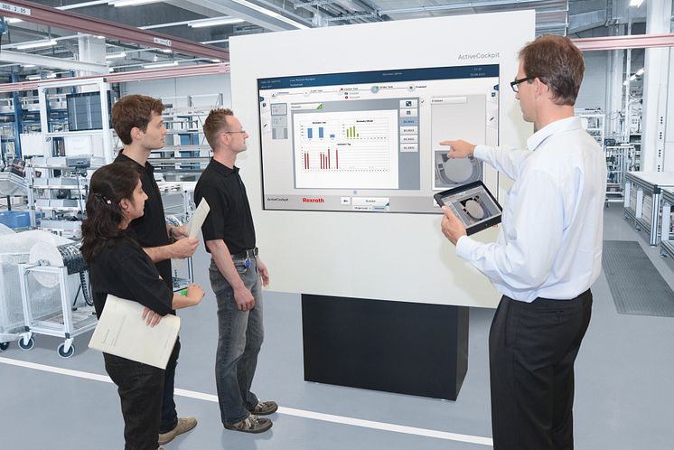 Med ActiveCockpit har Rexroth utvecklat ett nytt produktinformationssystem som registrerar alla relevanta uppgifter, dynamiskt uppdaterar det och grafiskt visar det på produktionslinjen i realtid. Som en länk mellan produktion och företagets IT möjliggör programvaran nätverkande i enlighet med Industri 4.0. Denna öppenhet har en viktig förutsättning för högre effektivitet i produktion.