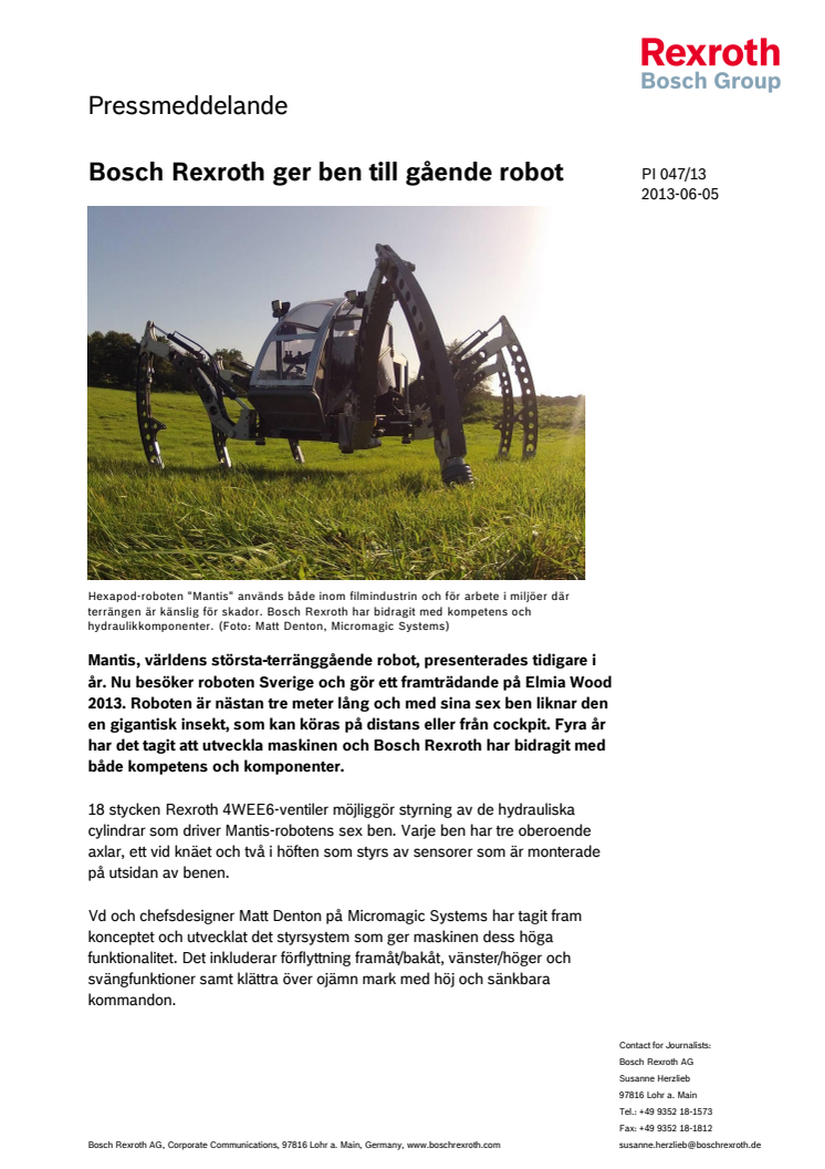 Bosch Rexroth ger ben till gående robot