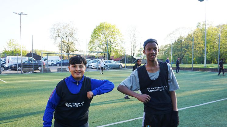 Två av killarna som passade på att träna fotboll förra fredagen är Rickardo och Sharmarke. Det märks att de är vana fotbollsspelare, men just nu spelar ingen av dem i någon klubb.
