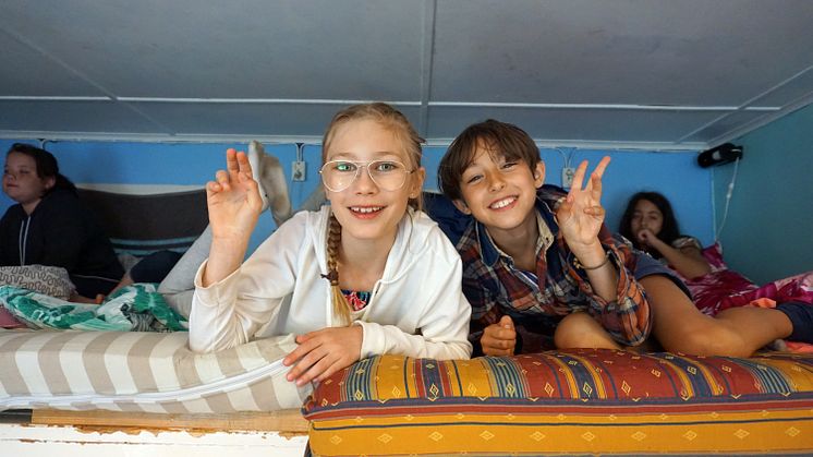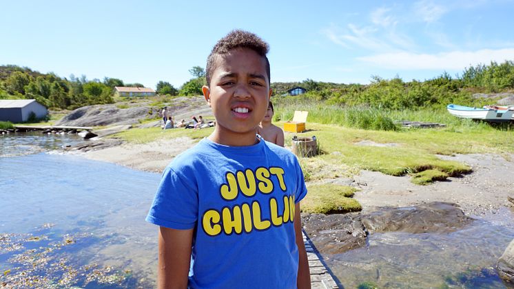- Vi brukar segla, fiska krabbor, bada och göra lekar. Sen kör vi olika tävlingar, en är en minneslek som heter Båtskjulets mästare. Vi städar också, ser vem som är först färdig och sånt. Man får nya kompisar här, träffar nytt folk hela tiden. Maten är bra, vi hjälper till att laga den.