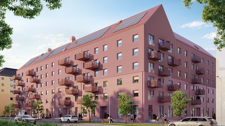 Det nya bostadskvarteret vid Litteraturgatan blir ett blickfång längs gatan med sina rosaskimrande fasader. Här bygger Framtiden Byggutveckling 108 nya hyresrätter för Poseidon med inflyttning september 2025. Lägenheterna är fördelade på två hus som ramar in en gemensam innergård mellan husen. Invändigt får lägenheterna öppna planlösningar med stilrena och klassiska materialval.