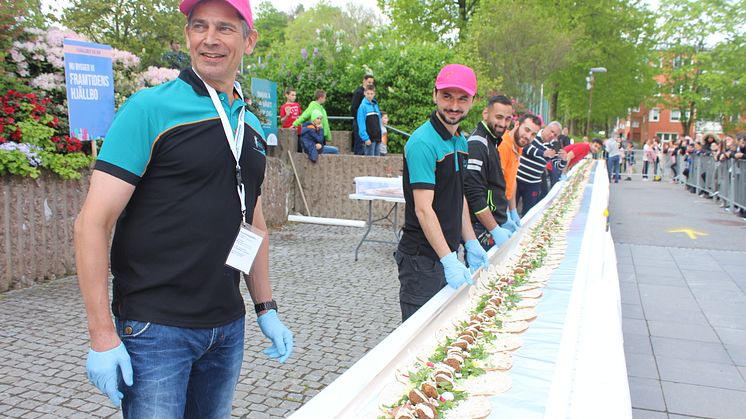 Världens längsta falafelrulle tillagades av Mohamed Elnel och hans medarbetare på Hjällbo Pizzeria.