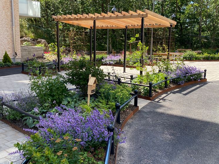 En av Bostadsbolagets planteringar i Guldheden. Miljövärdarna arbetar för att skapa biologisk mångfald i trädgården.