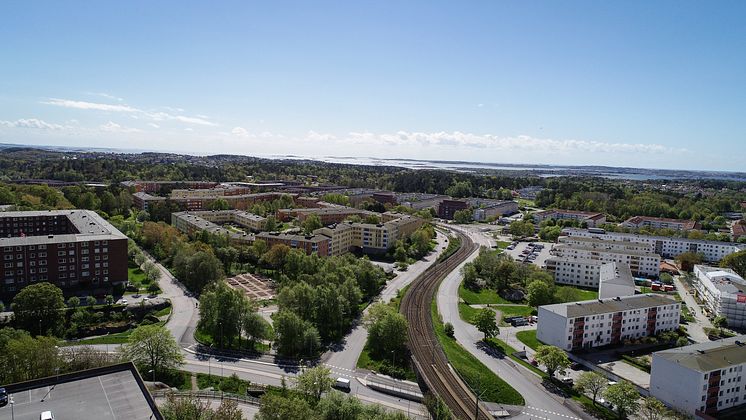 Alla lägenheter har fantastisk utsikt, och ju längre upp man bor, desto mer av havet ser man. Drönarbild från Briljantgatan.