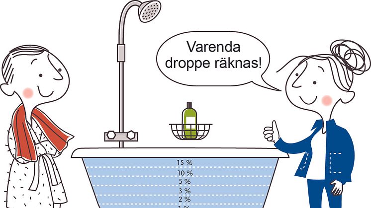 Och det finns mycket att spara. Om hyresgästerna minskar vattenförbrukningen med bara 15 procent kommer de att få återbäring. Om alla hyresgäster låter vattnet rinna bara 90 sekunder mindre om dagen kommer de att få dela på 4761000 kronor om ett halvår.