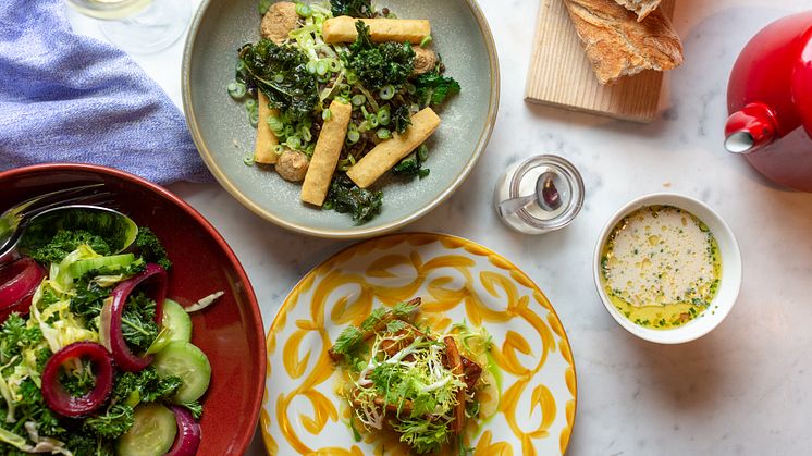 Nya menyn bjuder bland annat på två nya veganska rätter: Legumes Maison, en huvudrätt, med säsongens vegetariska smaker som belugalinser och grönkål med friterad panisse. Veganska dessertfavoriten är en Crème aux Chocolat med kokossorbet och rostad kokos.