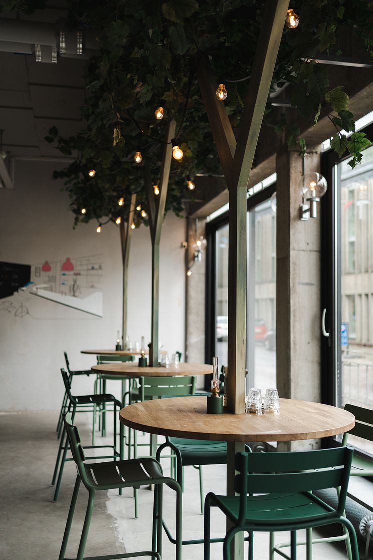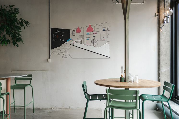 I arbetet med den nya miljön har Boulebars inredningsarkitekter försökt att ta vara på så mycket som möjligt av befintligt material. Bordskivor har vänts upp och ner och soffor har fått nya mjuka textilier, allt för att göra förvandlingen så hållbar som möjligt.