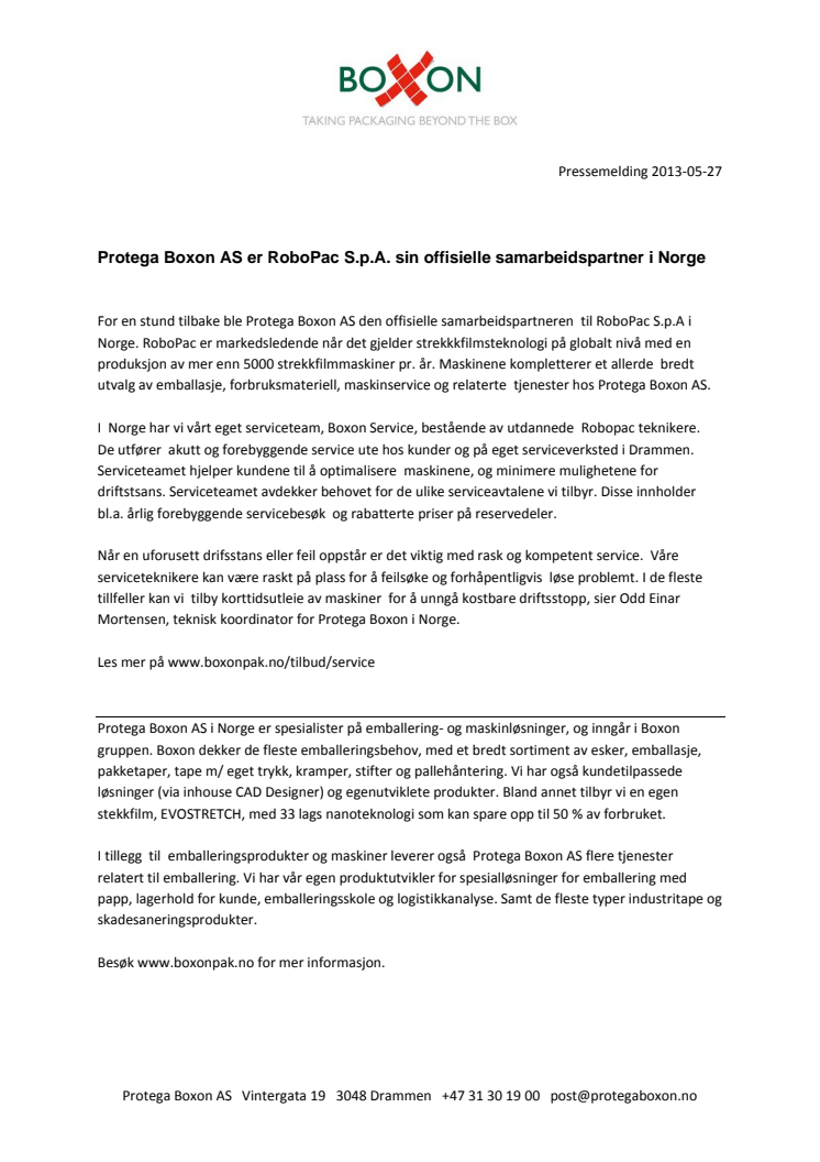 Protega Boxon AS er RoboPac S.p.A sin offisielle samarbeidspartner i Norge