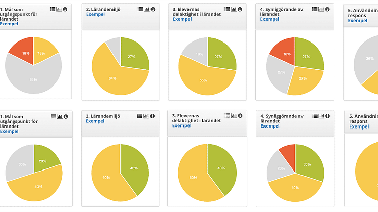 - När ni med statistik kan se och analysera hela kollegiets styrkor och utvecklingsområden samt hur undervisningens kvalitet utvecklas över tid. Parallellt jämför ni med progressionen i elevernas kunskapsutveckling.