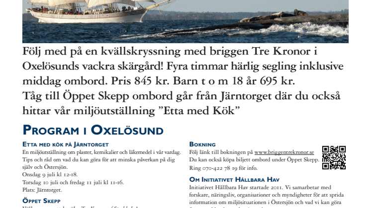 Initiativet Hållbara Hav hittar du i Almedalen, i olika hamnar längs våra kuster och övriga Östersjön samt på vårt årliga seminarium i slutet av sommaren på Kastellholmen. Se www.hallbarahav.nu