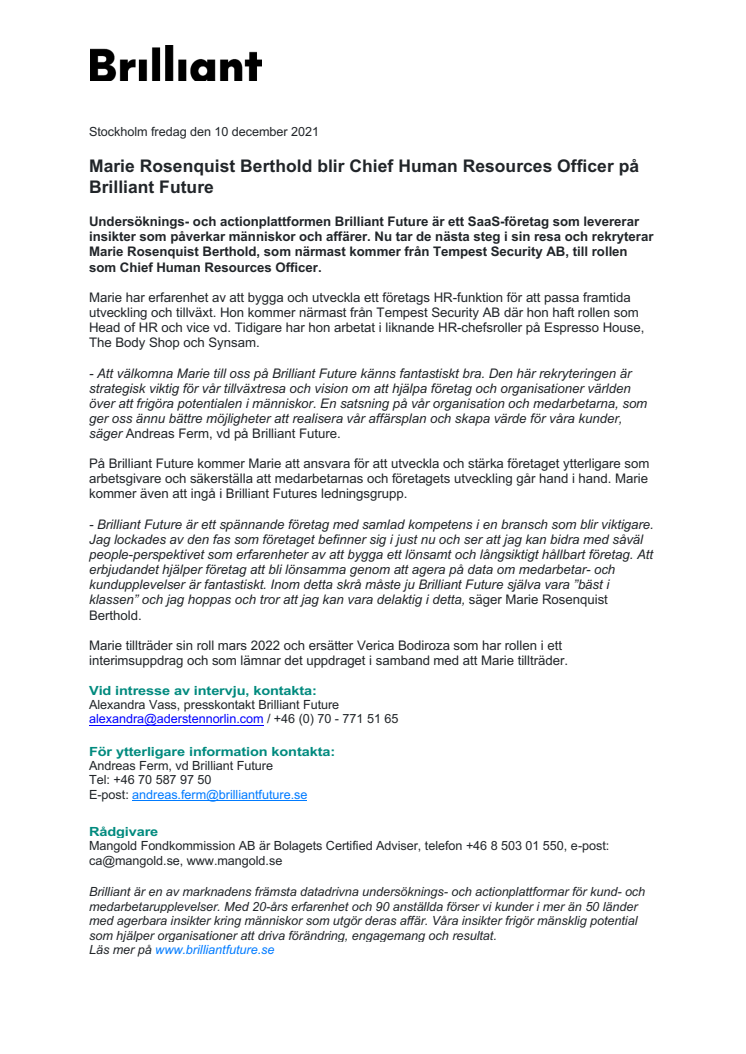Marie Rosenquist Berthold blir Chief Human Resources Officer på Brilliant Future .pdf