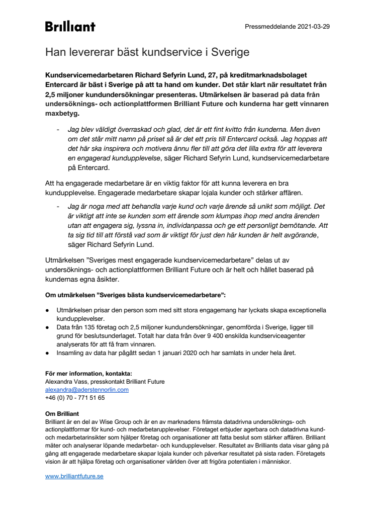 Pressmeddelande - Han levererar bäst kundservice i Sverige