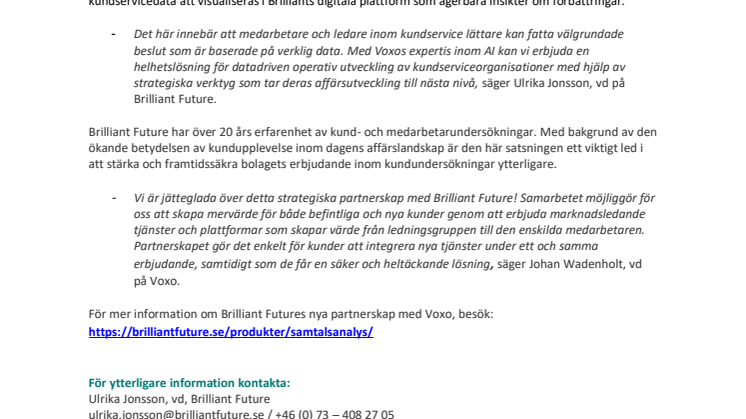 För mer information om Brilliant Futures nya partnerskap med Voxo, besök: https://brilliantfuture.se/produkter/samtalsanalys/