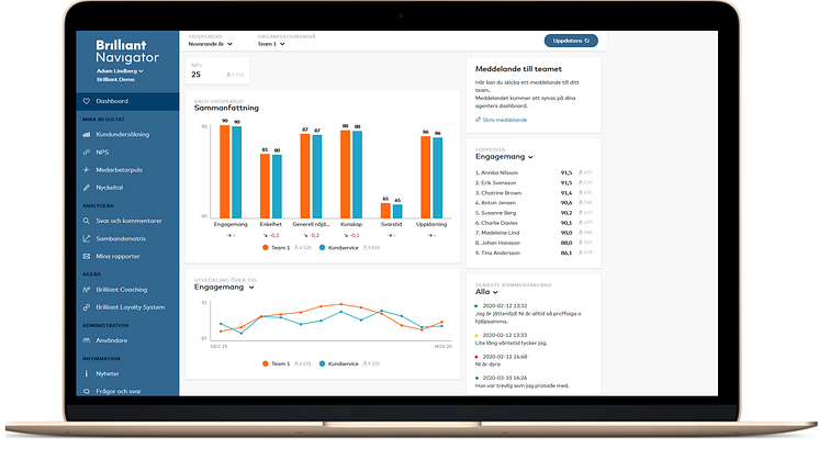 Brilliant mäter och analyserar löpande medarbetar- och kundupplevelser. Resultatet av Brilliants data visar gång på gång att engagerade medarbetare skapar lojala kunder och påverkar resultatet på sista raden. Företagets vision är att hjälpa företag och organisationer världen över att frigöra potentialen i människor.