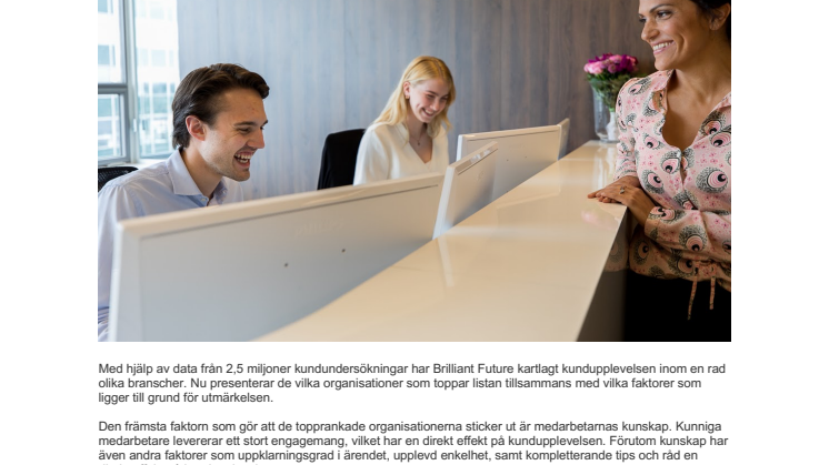 Med hjälp av data från 2,5 miljoner kundundersökningar har Brilliant Future kartlagt kundupplevelsen inom en rad olika branscher. Nu presenterar de vilka organisationer som toppar listan tillsammans med vilka faktorer som ligger till grund för utmärkelsen.