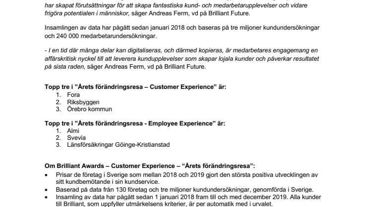 • Pressunderlag vinnare Powered by People - Employee Experience Award 2019
