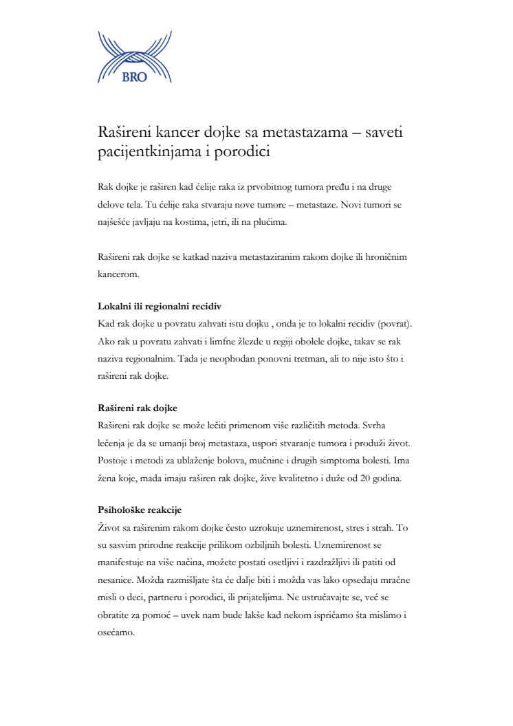 Rašireni kancer dojke sa metastazama – saveti pacijentkinjama i porodici – Fakta om spridd bröstcancer på bosniska, kroatiska, serbiska