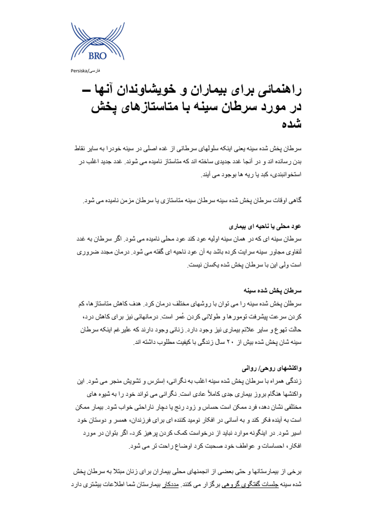 راهنمائی برای بیماران و خویشاوندان آنها – در مورد سرطان سینه با متاستازهای پخش شده - Fakta om spriddbröstcancer på persiska