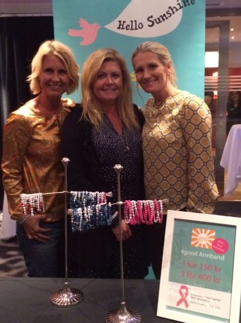 Marie Thorslund, 4good, Ella Katrin Lindström, BRO och Carina Sunding, vd 4Good. Under oktober månad är BRO förmånstagare till det kvinnliga inspirationsnätverket 4good. En del av försäljningen av 4goods armband går till Bröstcancerfonden och under föreläsningskvällarna informerar arrangörerna om hur BRO verkar och varför man skall stötta Bröstcancerfonden.