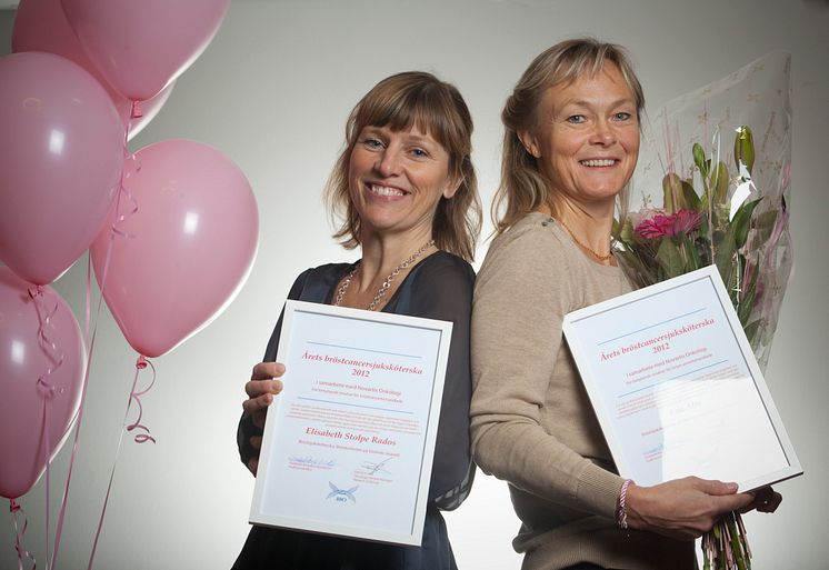 Årets Bröstsjuksköterska 2012. I år delas priset av Elisabeth Stolpe Rados och Eva Alm, båda vid Bröstenheten på Västmanlands sjukhus i Västerås. De får priset för ”ett oerhört professionellt och säkert yrkesutövande som skapar öppenhet, trygghet och värme i mötet med bröstcancerbehandlade”. Även deras insatser för att förbättra bröstcancervården genom lokala och nationella nätverk premieras.