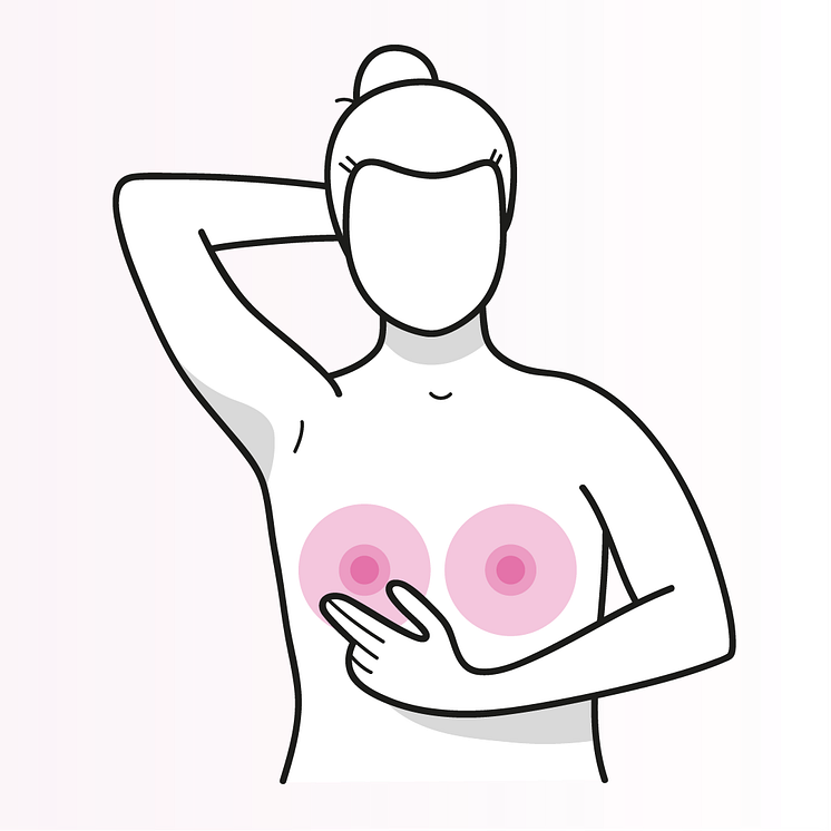 4. Undersök även brösten i liggande ställning med ena handen under huvudet.