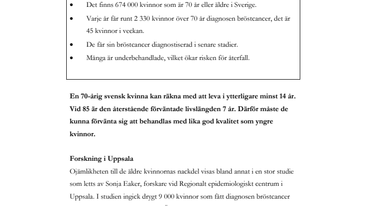 Faktablad om äldre kvinnor och bröstcancer finns i BRO:s pressrum: