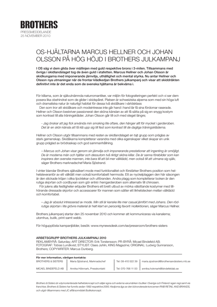 I Brothers julkampanj träffar vi Hellner och Olsson i schweiziska alperna där de imponerar med stor modekoll och visar att skid-kostymen definitivt inte är det enda de svenska hjältarna är bekväma i.