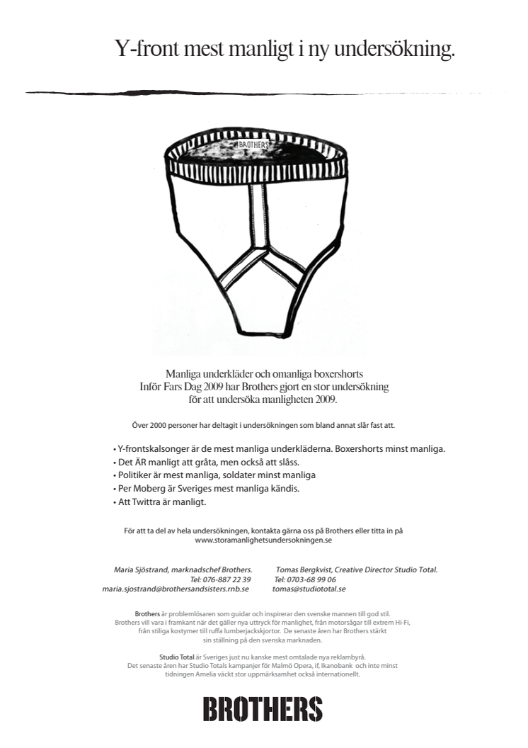 Manliga underkläder och omanliga boxershortsInför Fars Dag 2009 har Brothers gjort en stor undersökning för att undersöka manligheten 2009.