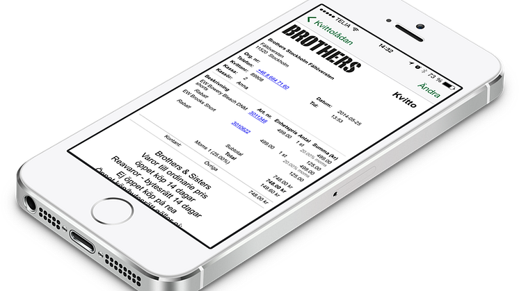– Vi har stärkt vår kundservice ytterligare och hjälper våra kunder att hålla koll på sina kvitton, den viktigaste värdehandling som är bra att ha nära till hands om du skulle behöva byta en present, reklamera ett köp etc, säger Peter Bondelid, VD på Brothers. När kunden vill ha kvittot digitalt genomför man köpet precis som vanligt. Efter man betalat och identifierat sig så lagras kvittot i molnet samtidigt som det plingar till i kundens telefon. Kunden kan sedan använda appen Sparakvittot för att se kvittot. Även om man inte använt tjänsten Sparakvittot tidigare så kan man fortfarande välja digitalt kvitto. Det ligger och väntar i den molnbaserade och säkra tjänsten och dyker upp i kvittolådan direkt när kunden laddar ner appen eller registrerar sig via nätet.