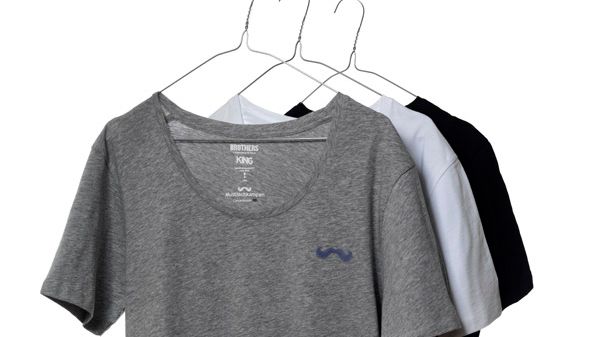 Brothers har tillsammans med King Magazine tagit fram en snygg och skön t-shirt till förmån för Mustaschkampen. Priset på t-shirten är 199 kronor och 50 procent, d.v.s. hela 100 kronor går till Mustaschkampen och Cancerfonden. T-shirten som finns i färgerna vit, svart och gråmelerad är precis lagom tunn och har en liten mustasch i flock print som går ton i ton och är placerad på vänstra bröstet.