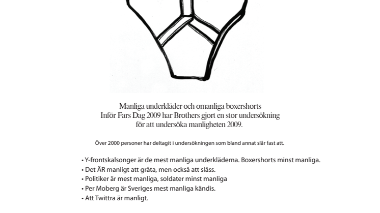 Manliga underkläder och omanliga boxershortsInför Fars Dag 2009 har Brothers gjort en stor undersökning för att undersöka manligheten 2009.