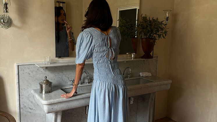 Även materialvalen har gjorts med extra omsorg och inkluderar bland annat en fantastisk satin i LENZING™ ECOVERO™ viskos som använts till flera av kollektionens plagg. För skorna har en certifierad mocka handplockats för en lyxig känsla som håller över tid.