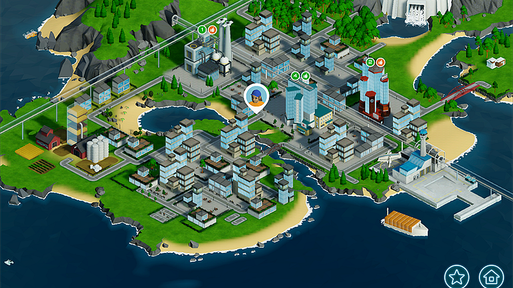 Den digitala världen liknar en spelapplikation, där användaren navigerar runt och vägleds till att söka kunskap om arbetsmarknadens möjligheter och utmaningar. Miljön är ett modernt samhälle uppbyggt som det kan tänkas se ut år 2040, med arbetsmarknaden och dess branscher och yrken som utgångspunkt.