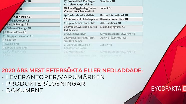 - Hetaste produkterna på ByggfaktaDOCU 2020