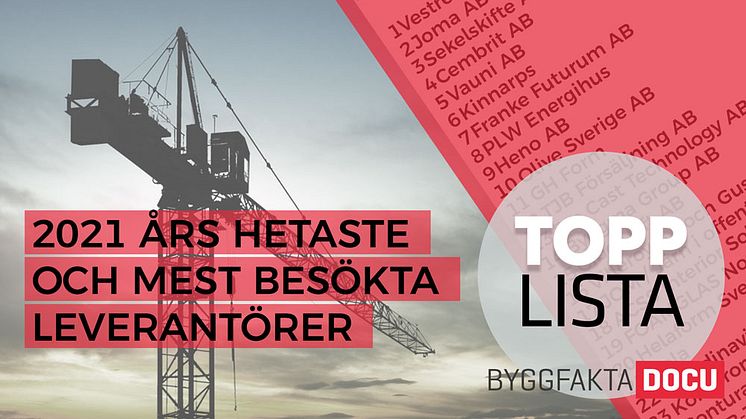 ByggfaktaDOCU publicerar för andra året publikt vilka de mest eftersökta leverantörerna är - unik topplista för helåret 2021