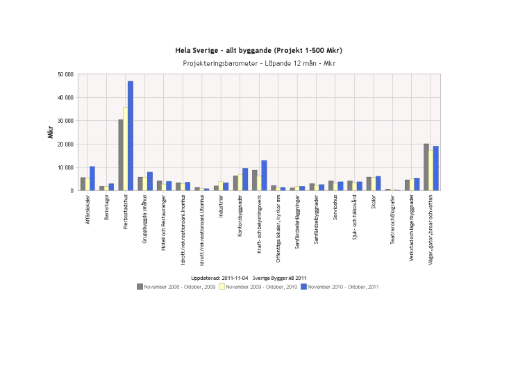 Byggprojekteringarna som ökar mest - aktuellt projekteringsindex per typ av byggande från Sverige Bygger