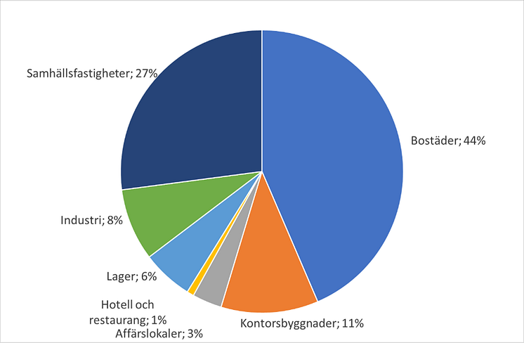 Byggnader: Bostäder utgörs av flerbostadshus och gruppbyggda småhus (inkl. äldrebostäder). Övriga byggnader utgörs av industrier, lager, kontorsbyggnader, affärslokaler, hotell och restaurang samt samhällsfastigheter. Byggnation som klassificeras som anläggning exkluderas från beräkningarna.