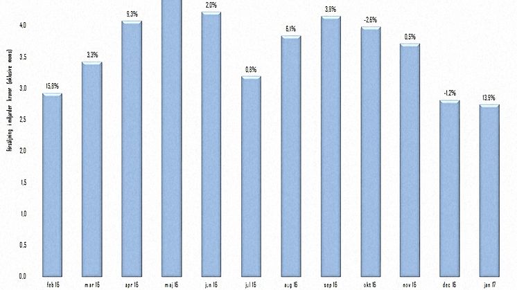 Fjolåret slutade med en ackumulerad tillväxt för Västra regionen med 6,5% så 2017 har onekligen startat positivt. Vi kan konstatera att det framförallt är försäljningen till proffsen (hantverkare, byggföretag m.fl.) som står för ökningen medan konsumentförsäljningen går trögare.