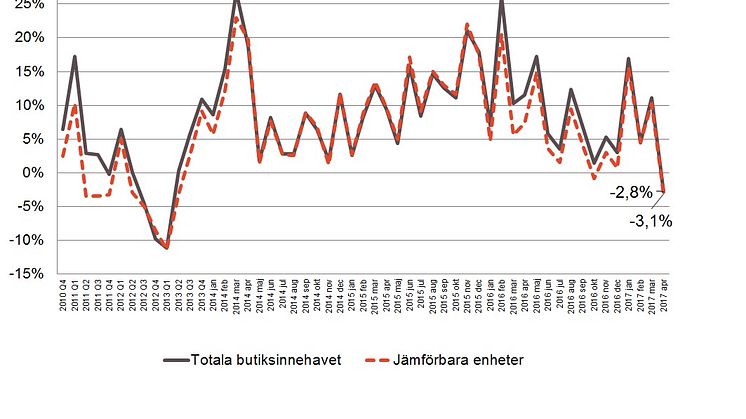 Försäljningen i * Mellersta regionen (se nedan vilka län som ingår) sjönk, under april i år jämfört med 2016, med 3,1% för jämförbara enheter. Riket sjönk under samma period med 5,4%. Mellersta regionen går alltså bättre är riket!