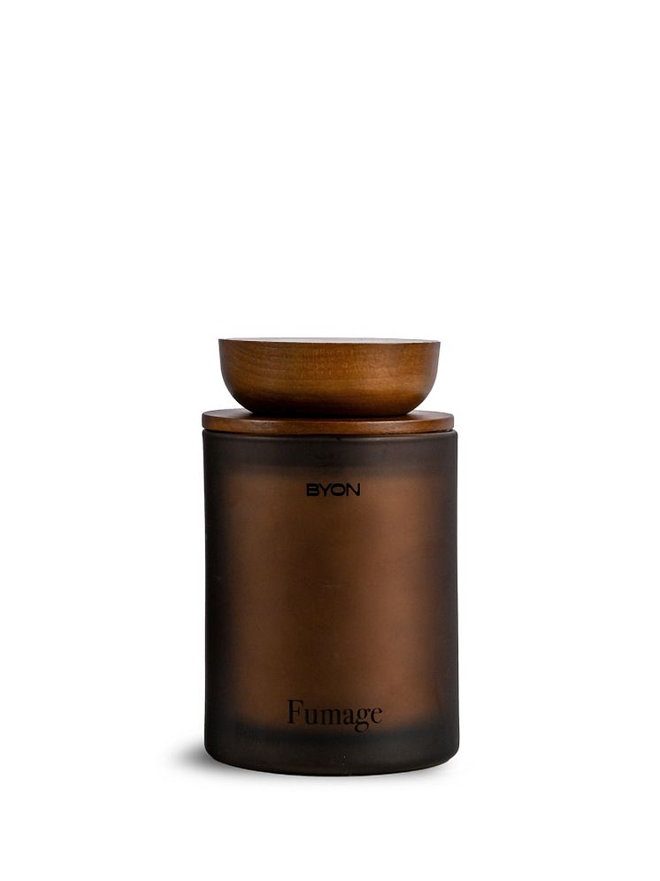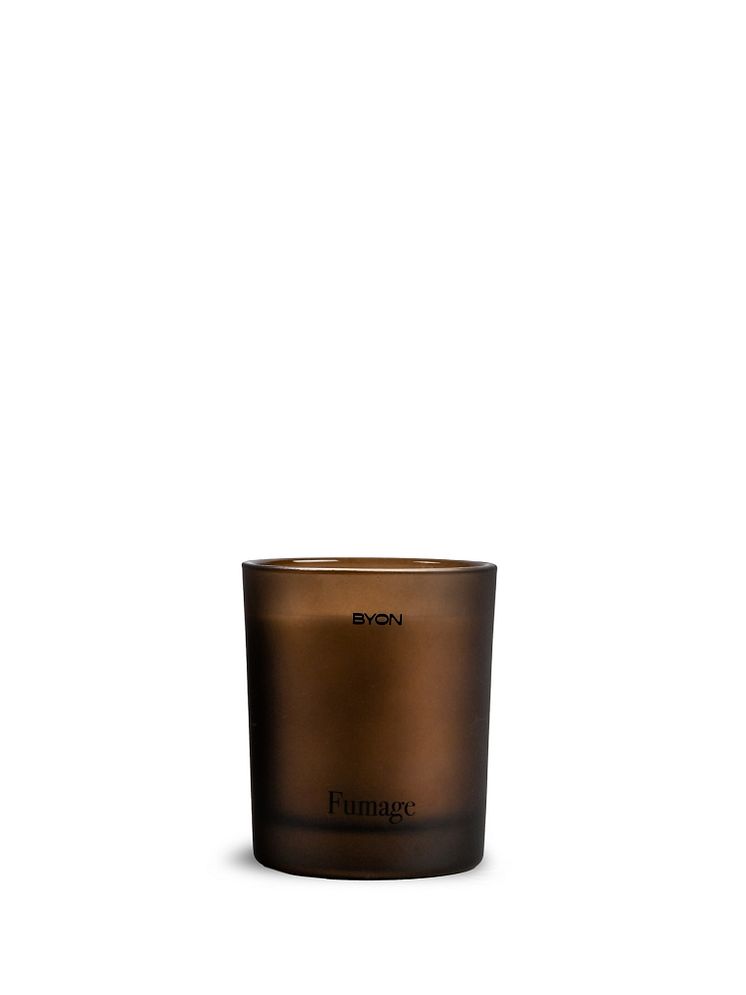 Mystik, champagne och tobak möts i Byons nya doftuniversum. Fumage bjuder på fem produkter, doftljus i olika storlekar samt doftstickor, allt förpackat i sobert brunt glas och zebramönstrade boxar. Tillverkad i sojavax med bomullsveke, och fri från paraffin och petrokemiska ämnen