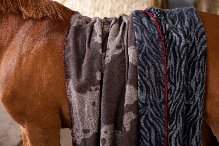 Färg: Brun ko med bordeauxkant & Grå zebra med röd laskad kant
