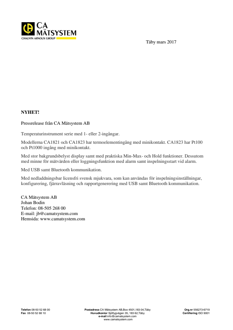 En ny serie temperaturinstrument från Chauvin-Arnoux