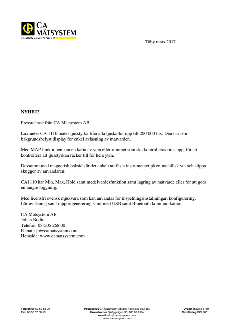 Se mer på vår hemsida www.chauvin-arnoux.se