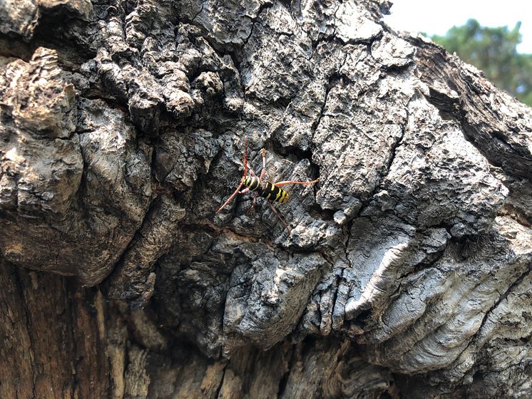 Bredbandad ekbarkbock är en getinglik skalbagge och en starkt hotad art.