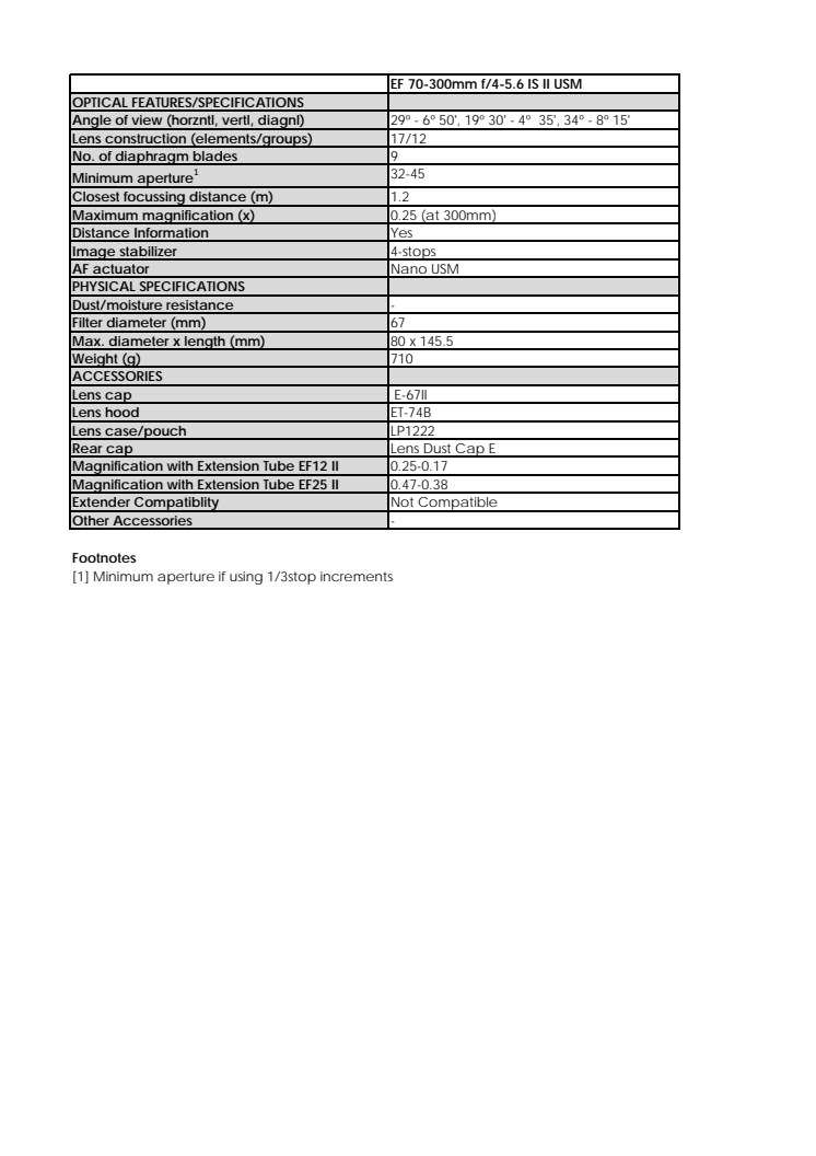 Canon Tekniska specifikationer EF 70-300mm f4-5.6 IS II USM
