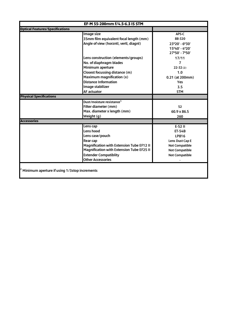 Canon Tekniska specifikationer EF-M 55-200mm f/4.5-6.3 IS STM